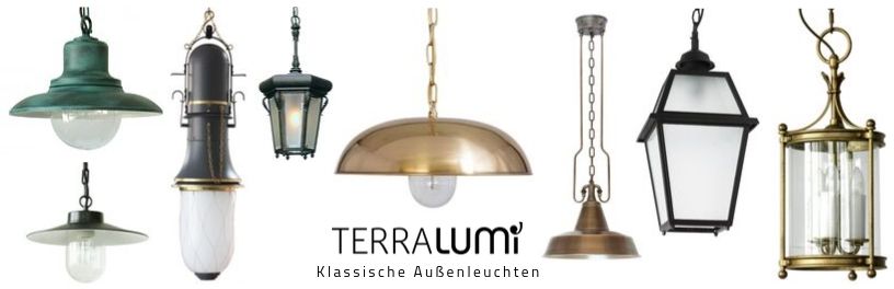 An der Decke oder am Wandarm hängende Außenlampen gibt es bei uns sowohl in Form von klassischen Außenlaternen, Schirmpendelleuchten, Kugelhängeleuchten oder Industriedesign-Lampen sowie aus den Werkstoffen Aluminium, Messing, Kupfer, Zink und Schmiedeeisen.