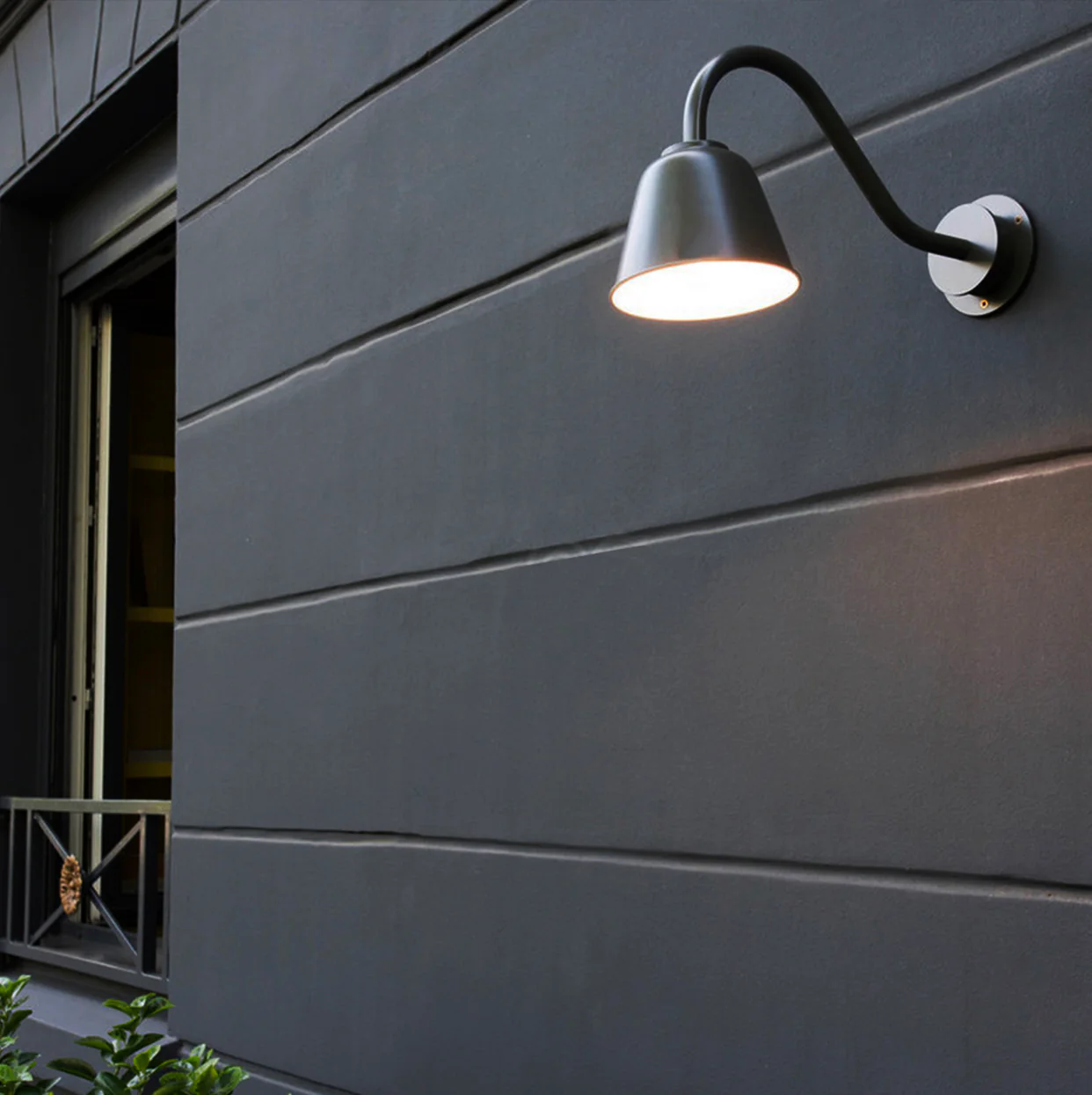Diese kleine dänische Außenlampe Bell aus Aluminium ist in vielen Farben erhältlich und uneingeschränkt im Außenbereich einsetzbar, auch in Küstenlagen.