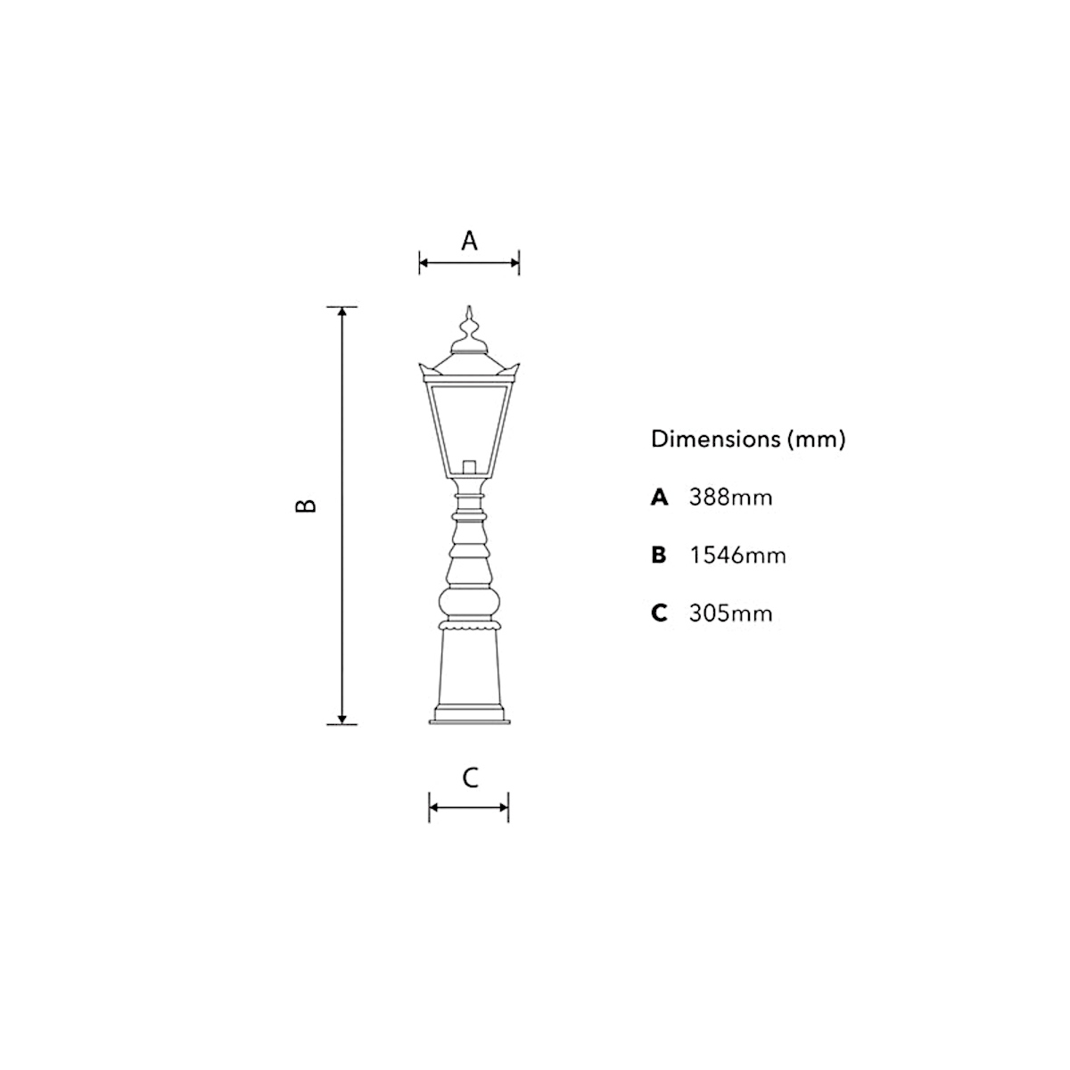 Diese imposante Gartenleuchte wird in Irland aus Gusseisen und verzinktem Stahl handwerklich gefertigt. Mit ihrer Höhe von 154 cm lässt sich die Leuchte vielfältig und repräsentativ einsetzen.