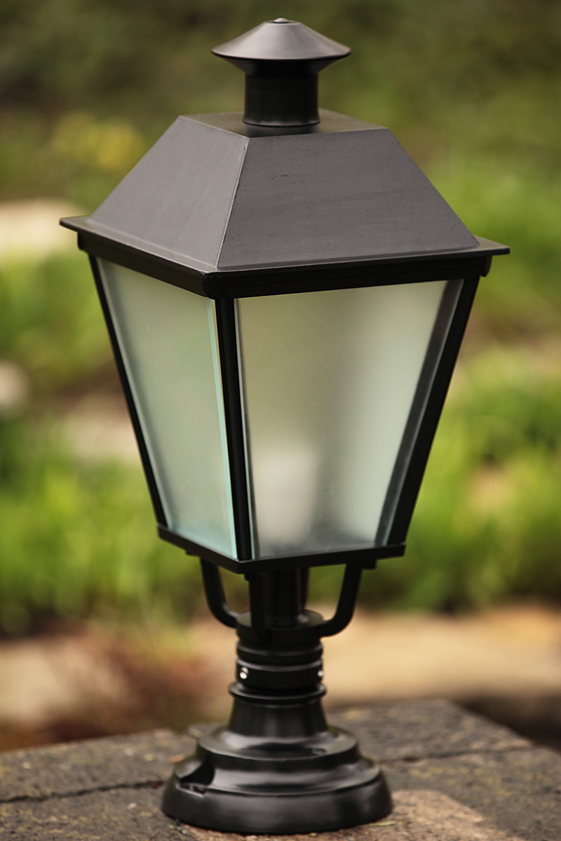 Material: Leuchtenkörper und Mast aus massivem, anti-korrosionsgrundiertem Aluminiumguss