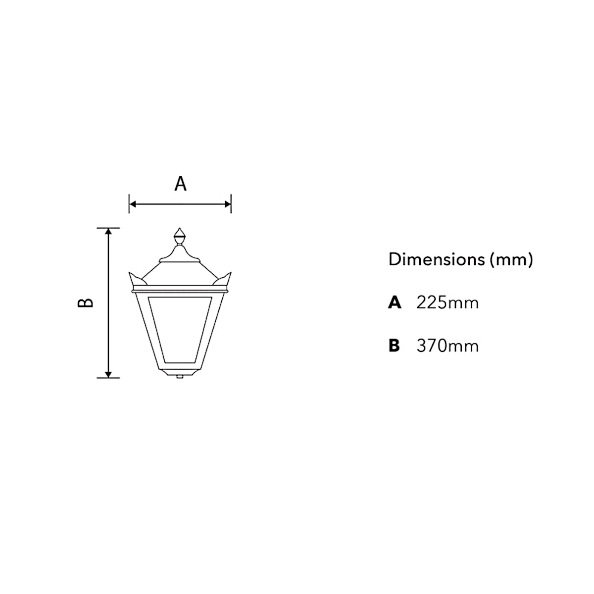 Die Leuchte ist klassisch Schwarz (RAL 9005) lackiert und mit klarem Glas versehen.