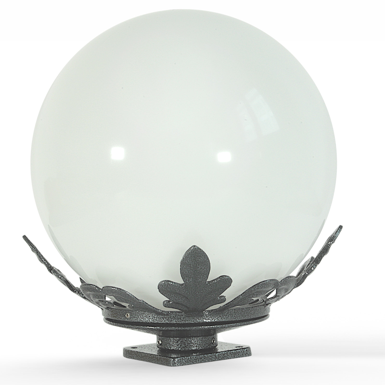 Die Kugelleuchte für Außen Terra lumi 300 ziert ein schöner Dekor-Sockel mit Blatt-Ornamenten. Die Leuchte wird aus massivem korrosionsbeständigem Aluminiumdruckguss gefertigt und ist mit einer hochwertigen 300-mm-Acrylglaskugel in Opalweiß oder Rauchglas ausgestattet. Erhältlich ist die Außen-Kugelleuchte in fast jeder denkbaren Pulverlackierung, darunter Antikfarben (z.B. Grünspan), Eisenglimmer und die Farben der RAL-Tabelle.