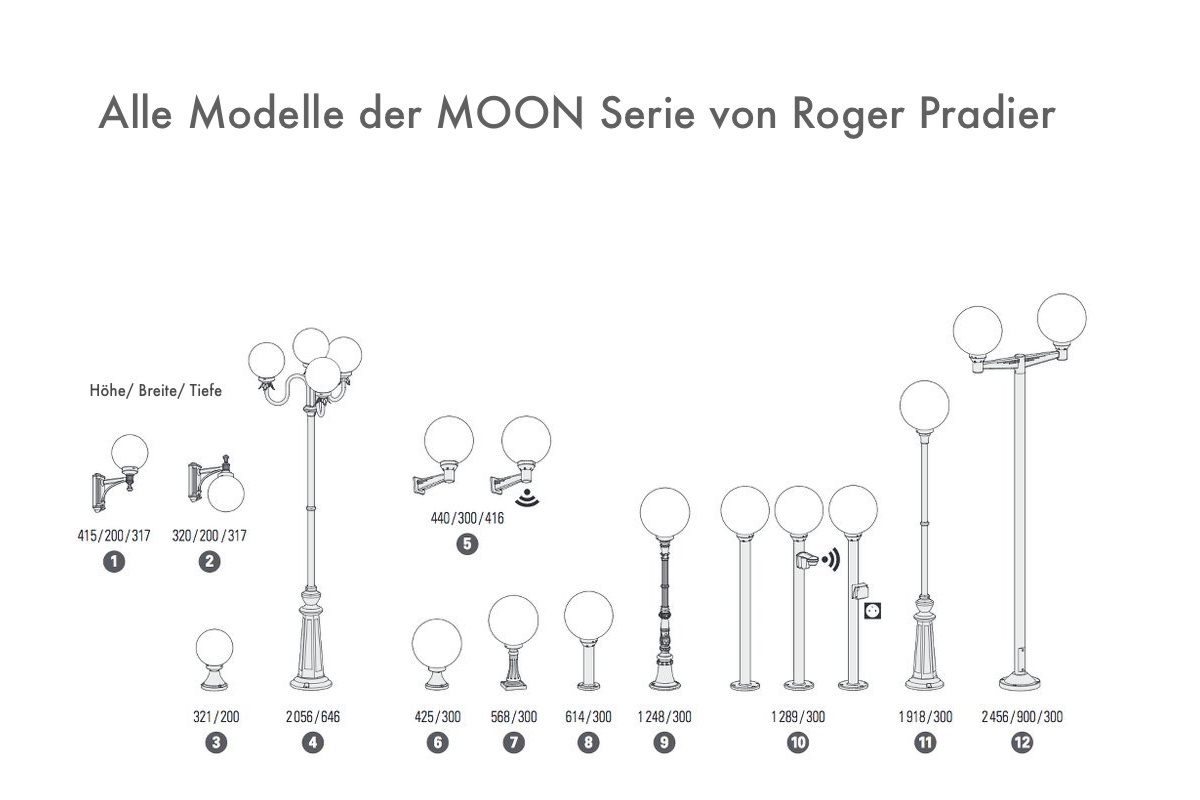 Die Modellreihe Moon umfasst sowohl Sockel- und Mastleuchten als auch Wandleuchten.