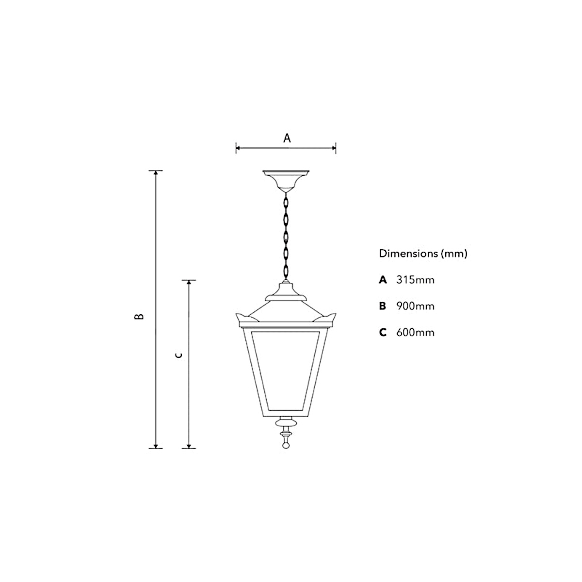 This Victorian-style hanging lantern is made of cast iron and galvanized steel.