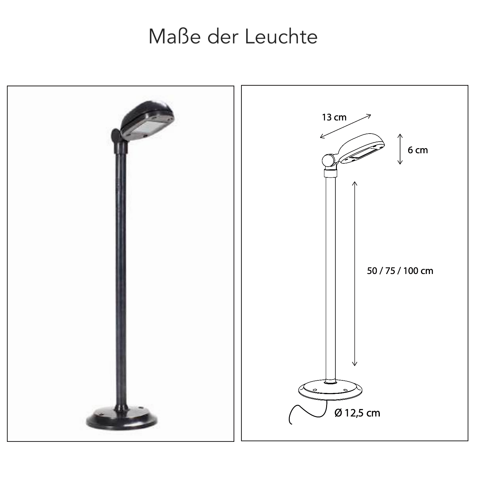 All models are either available with foot plate and cable, or with integrated transformator, or with ground spike.