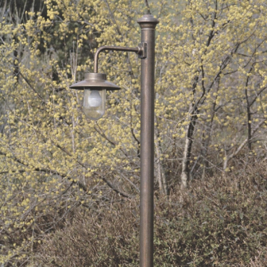 We offer the classic Italian Nabucco courtyard lamp with protective glass and small shade as a post-top attachment. It matches the brass columns of the traditional Italian manufacturer Aldo Bernardi and enriches your property as a floor light for gardens, parks and driveways with an incomparable flair.