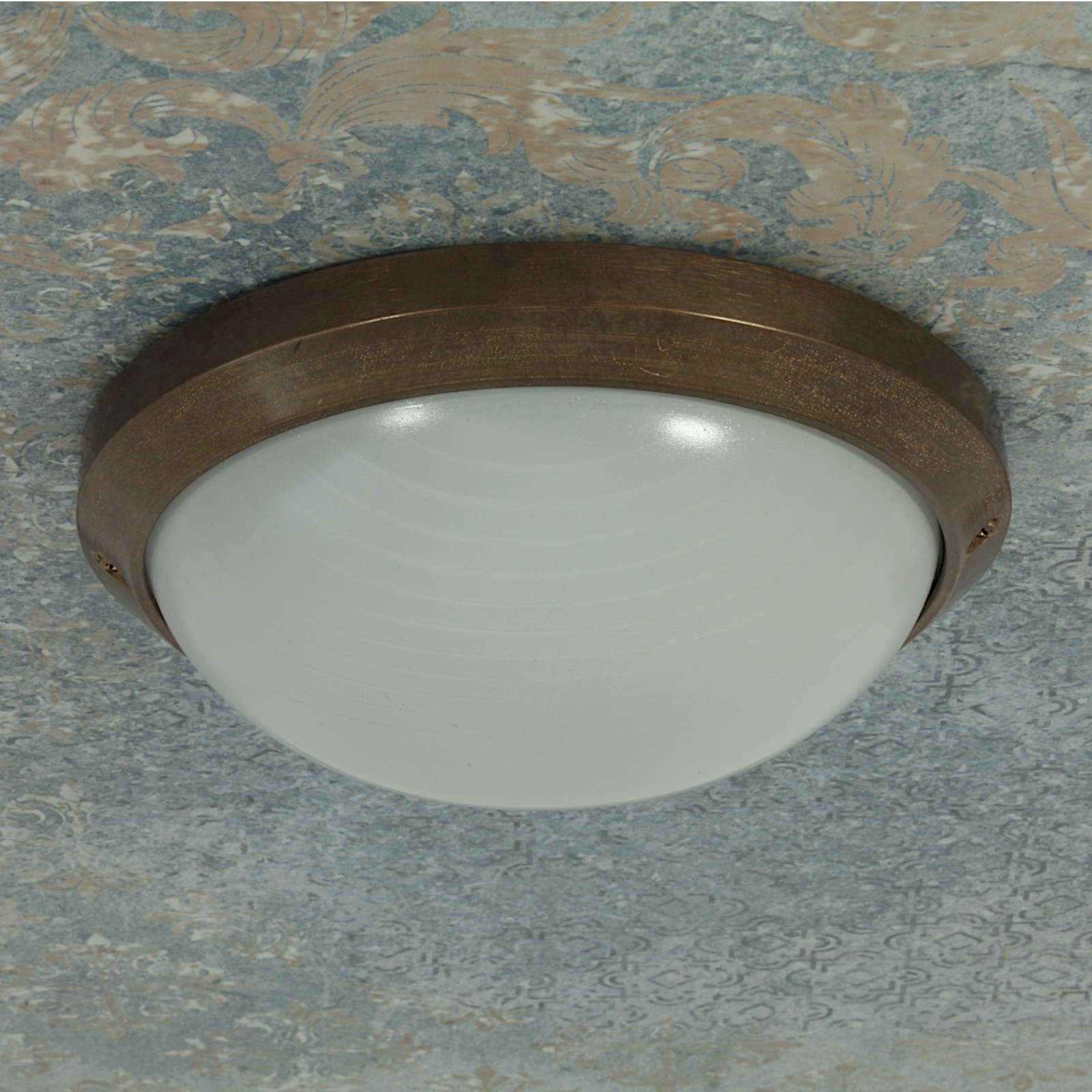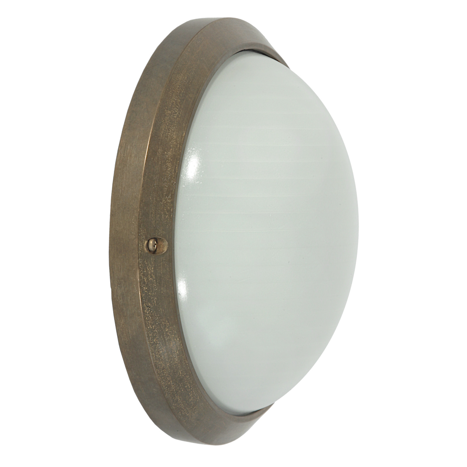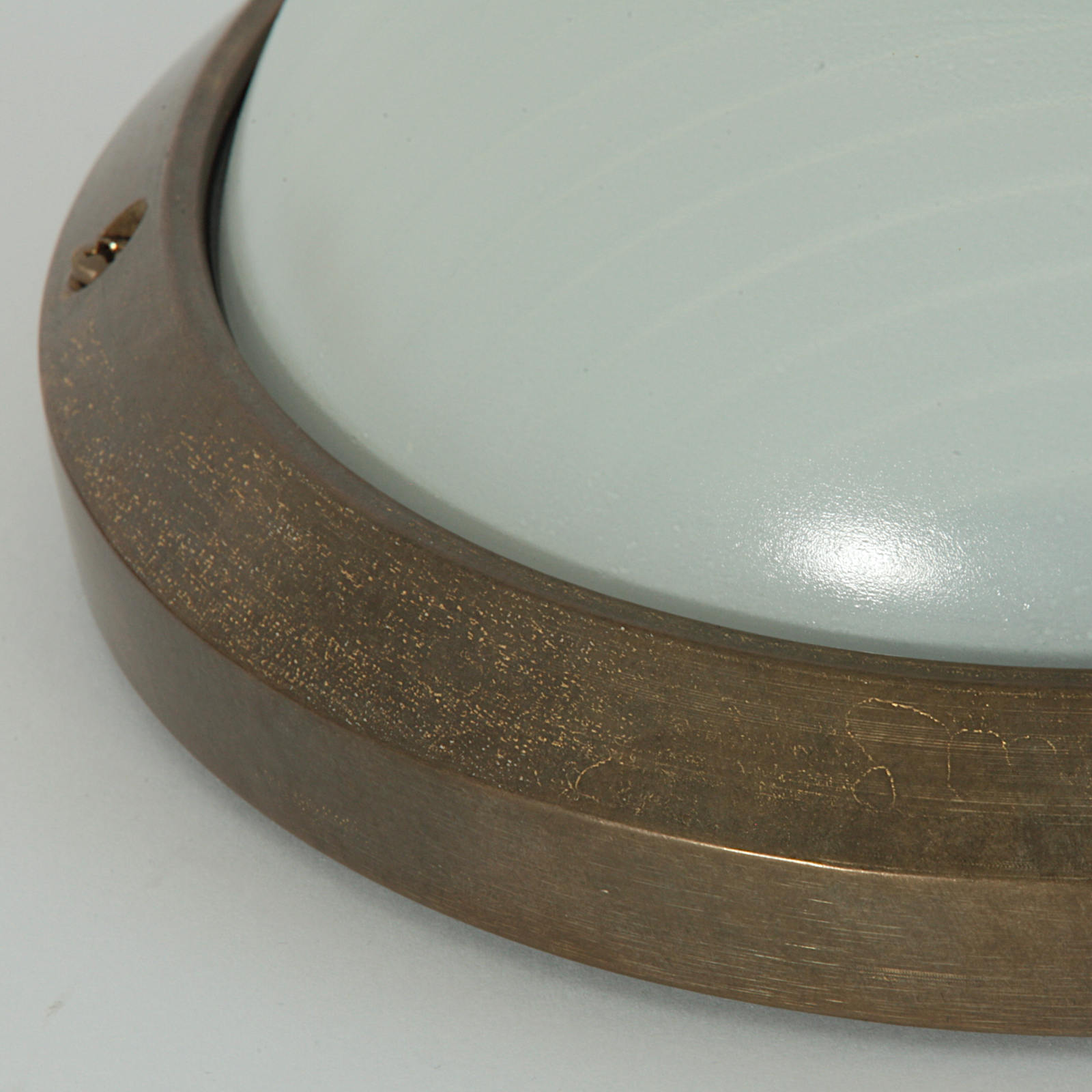 The frame made of antique or raw brass surrounds an elegantly ribbed glass diffuser, which subtly diffuses the light and thus ensures a pleasant, glare-free atmosphere. The screwed design underlines the durability and the vintage charm.