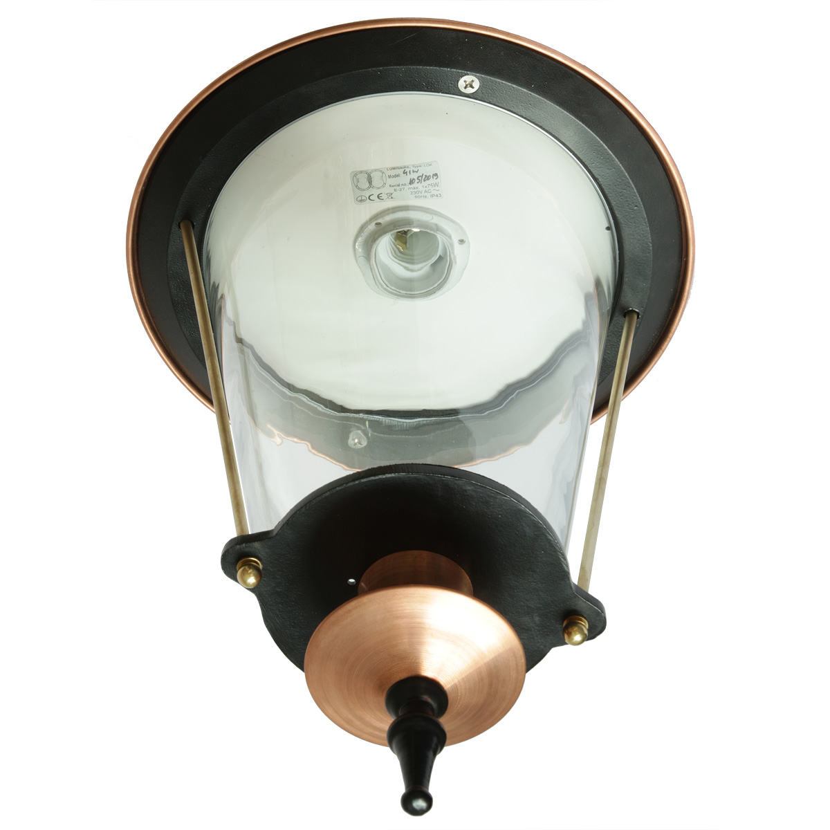 Material: lantern and bracket made of solid, corrosion-resistant die-cast aluminium, roof made of copper. White reflector inside.