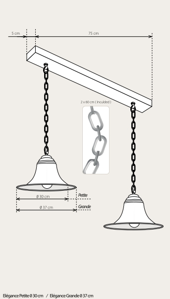 Bell-Shaped Brass Pendant Light Elégance: this Belgian pendant light with a beautiful bell shade is finished in darked bronze, chrome or nickel. This suspension light is available in two sizes.